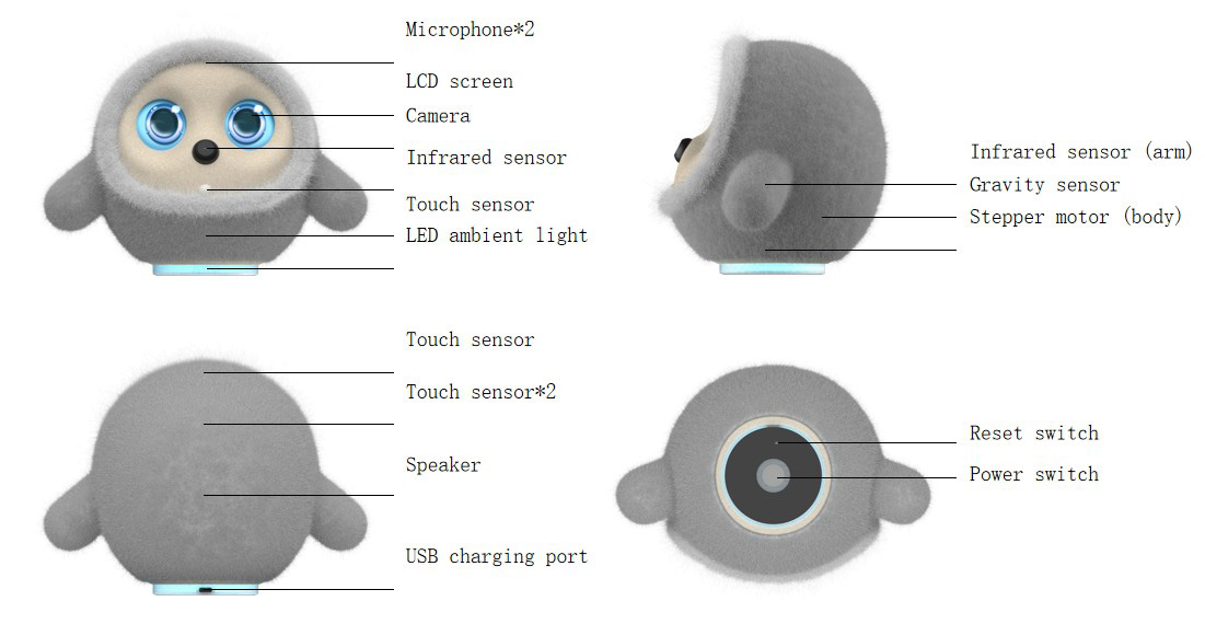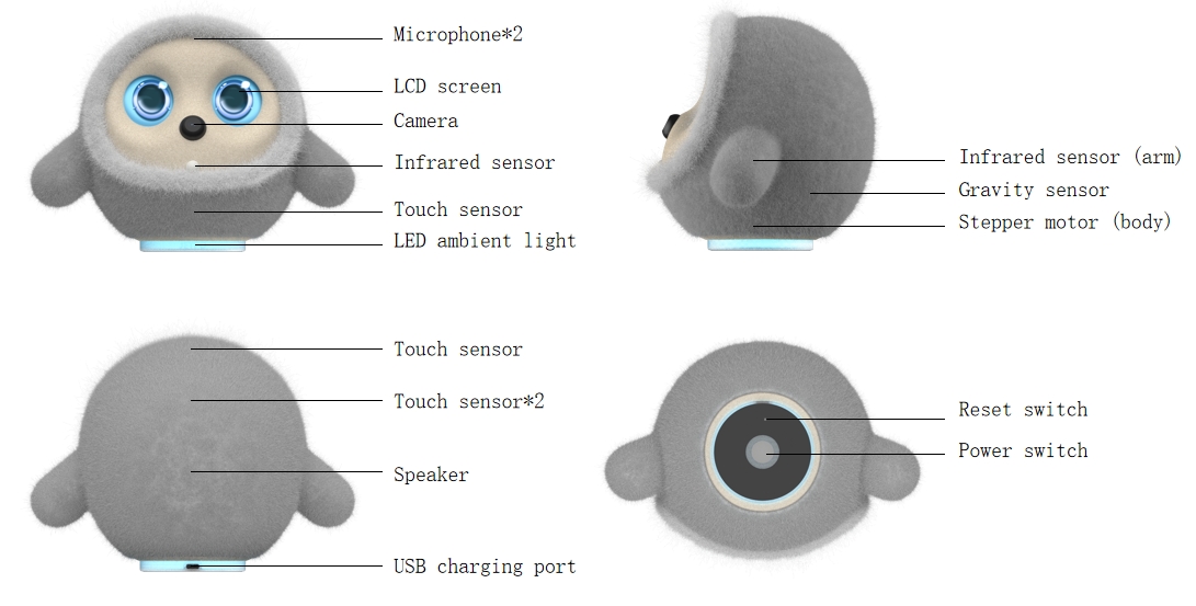 | Skrin Ekspresi LCD | Skrin LCD 4.28 inci (mata), menyokong paparan ekspresi dinamik dan paparan teropong (seperti Maklum balas visual apabila "bermain mati" atau "bertindak comel"). |