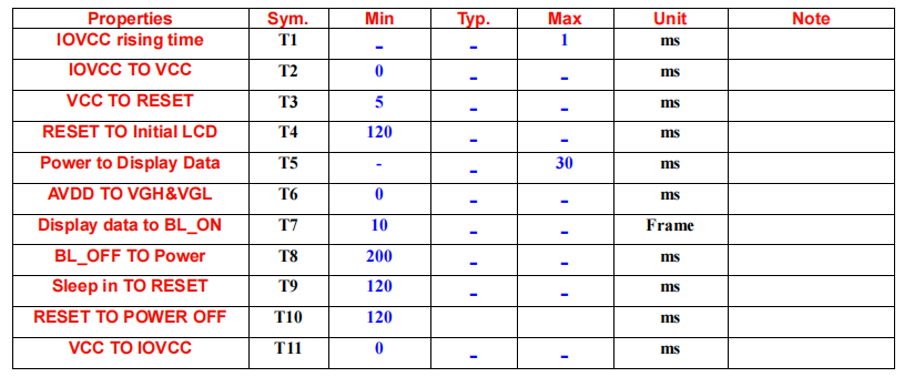 2.Analog Enablement (VGH/VGL/AVDD/VCOM Power-Up): Aktifkan pemanduan voltan tinggi dan bekalan kuasa analog, penjajaran molekul kristal cecair dan penjanaan warna.