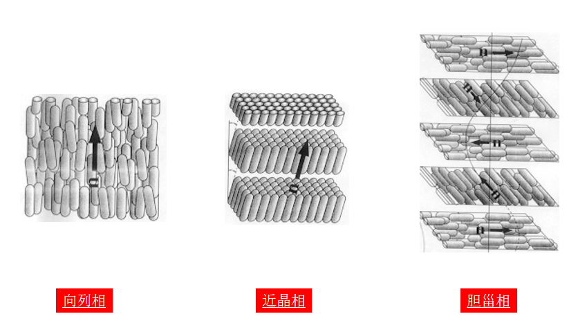 Bagi kristal cecair untuk memiliki nilai aplikasi praktikal, molekul mereka mesti membentuk susunan teratur di peringkat mikroskopik, yang dikenali sebagai "struktur fasa." Ini terutamanya dikategorikan kepada tiga jenis: fasa smektik yang sangat diperintahkan, fasa nematik di mana paksi panjang molekul diselaraskan tetapi kedudukannya tidak teratur (yang paling biasa digunakan dalam teknologi paparan semasa), dan fasa kolesterik yang disusun secara spiral.