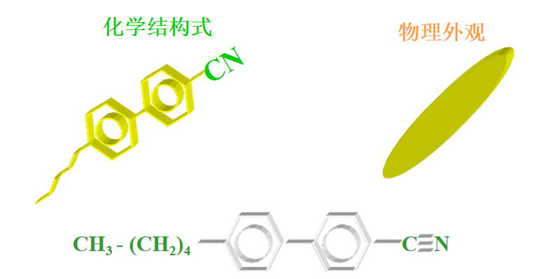 Pembentukan struktur ini bergantung pada reka bentuk khas molekul kristal cecair: mereka biasanya berbentuk batang, dengan panjang jauh melebihi lebarnya (mis., 2nm vs 0.5nm), mempunyai paksi panjang molekul yang tegar, dan mempunyai kumpulan polar atau polarizable di hujung mereka. Struktur molekul anisotropik ini adalah sebab asas mengapa kristal cecair dapat bertindak balas terhadap medan elektrik luaran dan mengubah sifat optik mereka.