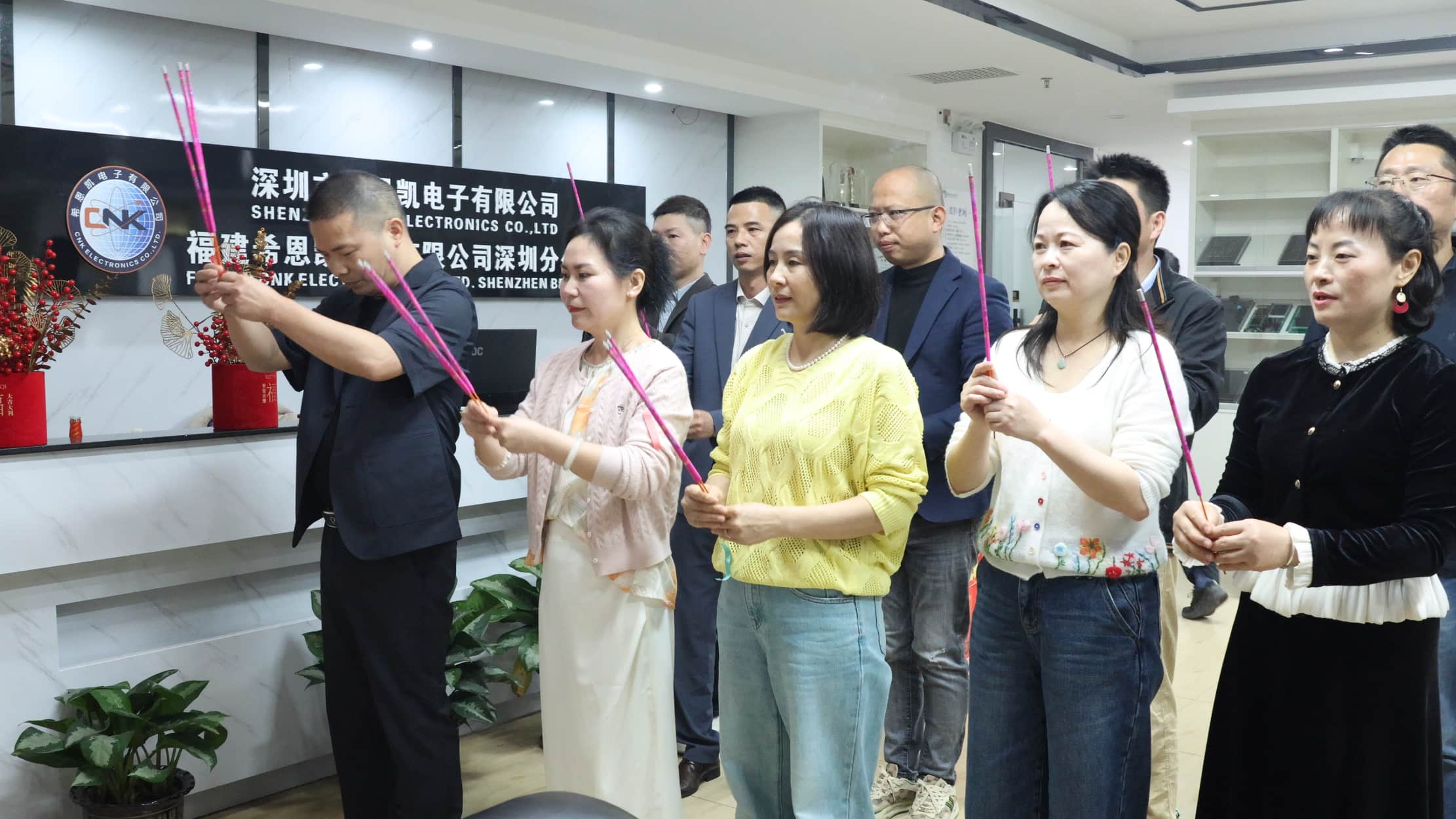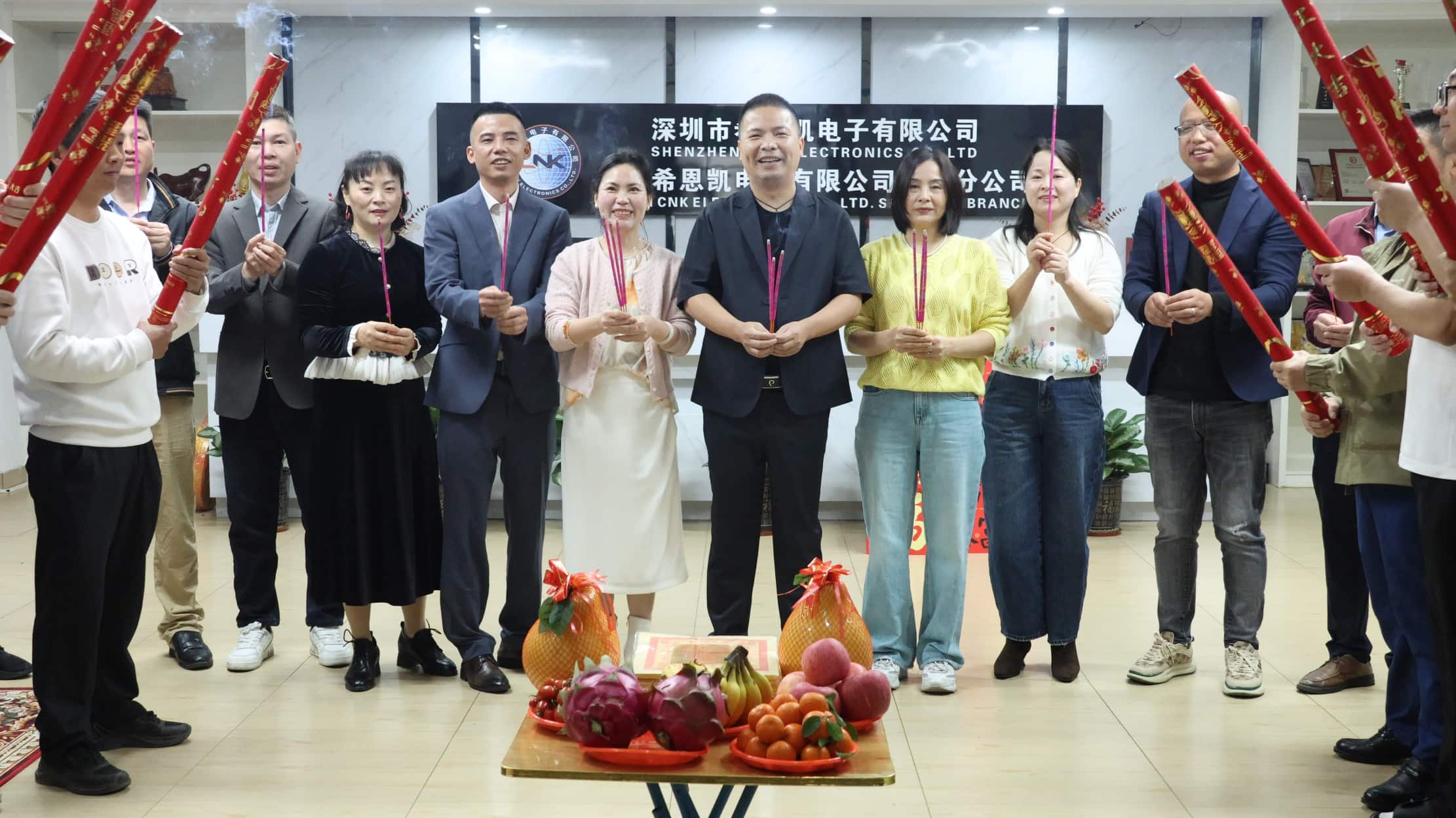 Pada waktu subuh, pengurusan tertinggi syarikat berkumpul dan mengetuai semua pekerja mengadakan majlis perasmian besar-besaran. Asap kemenyan naik dari meja, dan persembahannya berlimpah-limpah. Ini bukan sahaja menyatakan rasa hormat kami kepada langit dan bumi tetapi juga membawa hasrat ikhlas semua pekerja untuk tahun yang makmur dengan cuaca yang baik dan perniagaan yang lancar. Di tengah-tengah kemenyan, para pemimpin mempersembahkan kemenyan dengan penuh pengabdian, berdoa memohon keberkatan dan nasib baik untuk rancangan besar syarikat pada tahun baru.