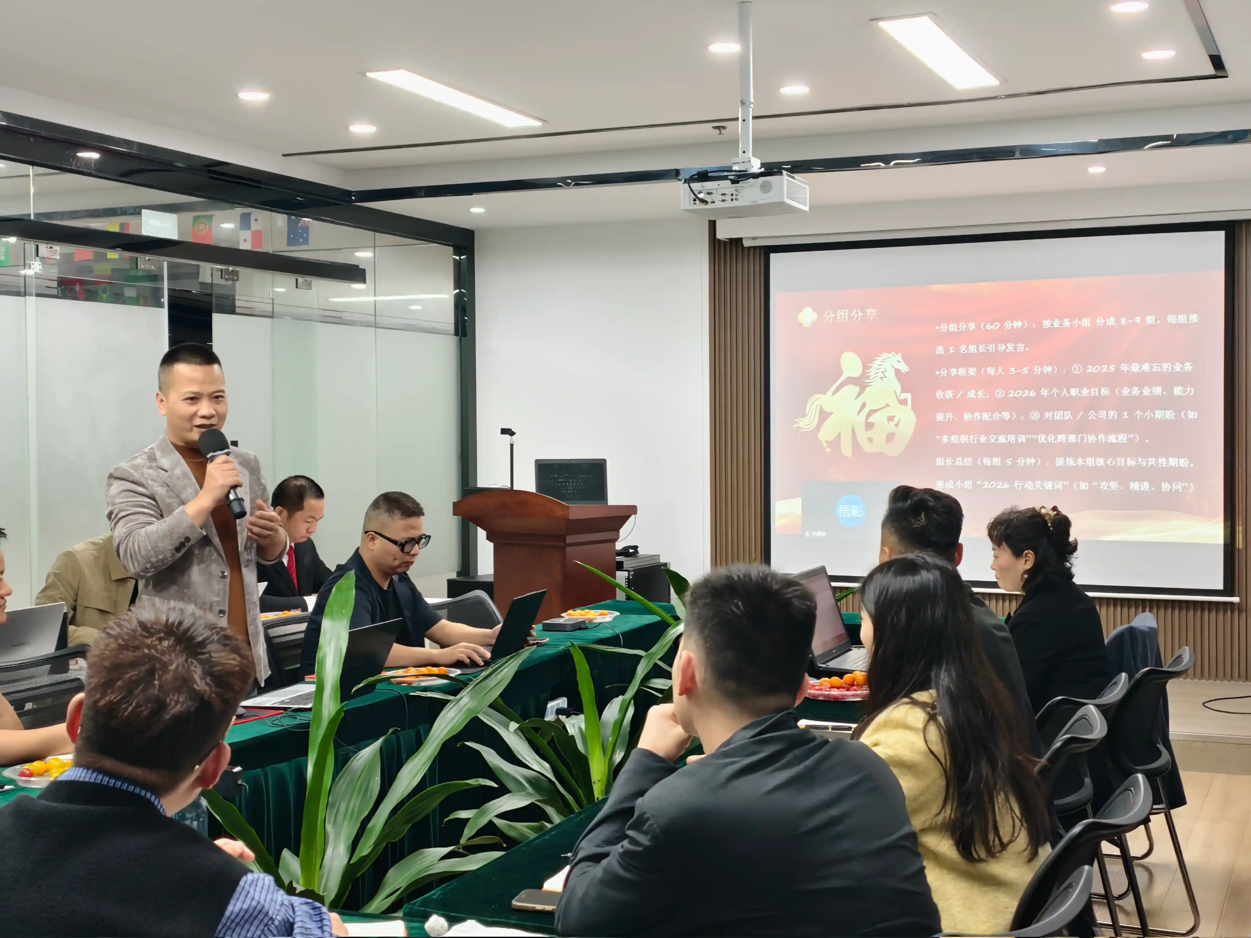 Pengerusi mengesahkan sepenuhnya pencapaian Jabatan Jualan pada tahun 2025 dan menjawab jangkaan yang dibangkitkan oleh setiap kumpulan satu demi satu. Melukis kebijaksanaan daripada Tao Te Ching, beliau menerangkan cara jualan dan pertumbuhan peribadi, menekankan kepentingan penetapan matlamat dan kajian kaedah, transendensi diri, dan inovasi. Beliau juga berkongsi falsafah jualan mengenai imej luaran, hubungan interpersonal, dan hubungan emosi. Tambahan pula, beliau memperkenalkan dasar syarikat mengenai perkhidmatan keutamaan untuk pelanggan utama, sokongan kewangan, dan jaminan projek, menggalakkan semua orang untuk mengukuhkan keyakinan mereka, meneroka keperluan pelanggan secara proaktif, dan menyepadukan pertumbuhan peribadi dengan pembangunan syarikat. Beliau mengakhiri ucapannya dengan menggalakkan pasukan untuk menyahut cabaran 2026 dengan gaya baharu dan jangkaan baharu. Sesi Soal Jawab seterusnya menjelaskan hala tuju dan meningkatkan semangat pasukan.